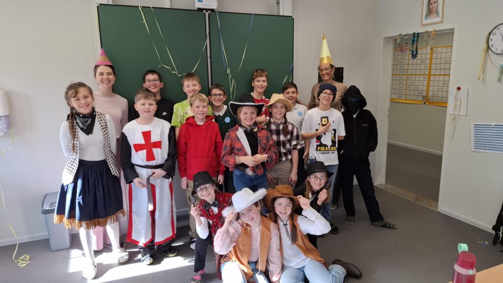 A day full of color, music, and good cheer – that’s how we celebrated Carnival at our middle school! Creative and colorful costumes were seen all over the school building. Whether funny, exciting, or fairytale-like: our students surprised us with great ideas. Of course, delicious food was also a must: sweet doughnuts, snacks, and many other delicacies provided refreshment in between. With varied games, cheerful dances, and well-known songs, everyone laughed, sang, and celebrated together.