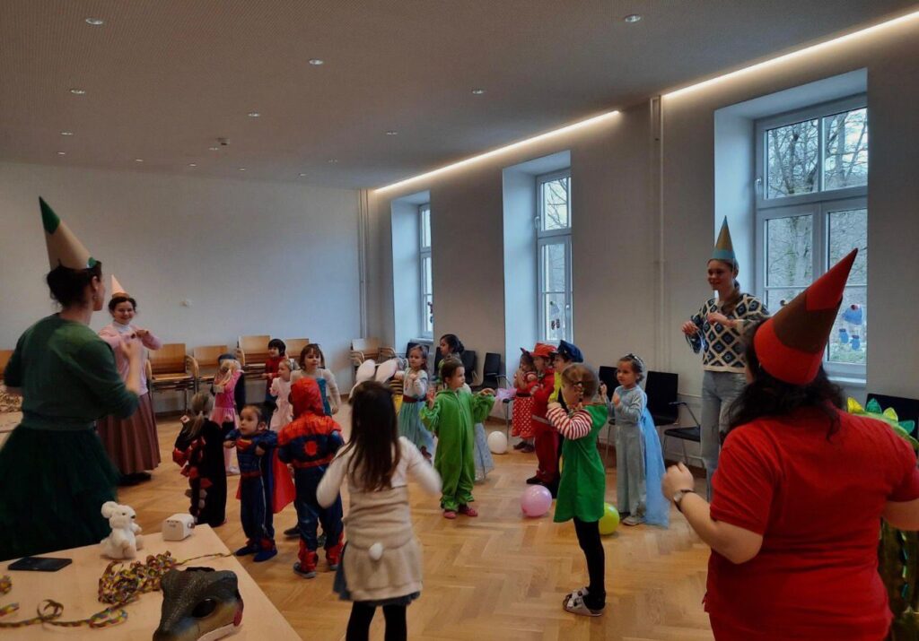 Our kindergarten became colorful and cheerful again as we celebrated Carnival together. The children arrived in fantastic costumes and looked forward to a special day full of games, fun, and music. At various stations, children could wrap mummies, participate in eating contests, play snakeball, and transport confetti. Laughter, cheering, and shared play filled the air everywhere. In the multi-purpose room, both groups celebrated together with fun games, dances, and a catwalk where each child proudly presented their costume.